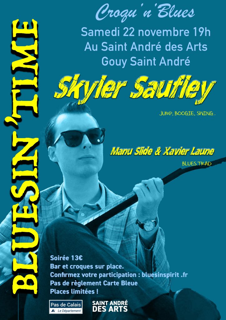 En tant que multi-instrumentiste autodidacte et récemment intronisé au Alabama Blues Hall of Fame, Skyler Saufley est un artiste de blues unique. Spécialisé dans le blues de style jump, swing et west coast, le groupe de Saufley évoque tout en élégance et talent l’esprit des légendes du blues tel que T-Bone Walker ou encore Pee Wee Crayton.